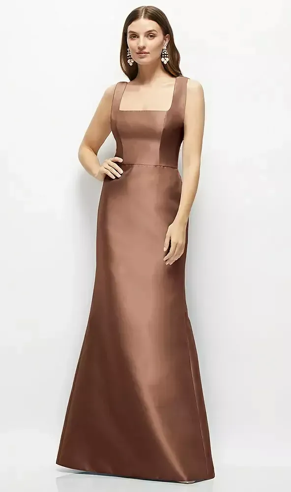 This fit-and-flare maxi dress is an ultra-chic dream, crafted in lush satin twill. It sports a sleek square neckline that frames your face just right and a playful V-back. The super flattering silhouette nips in at the waist and hugs your curves before softly flaring out into a floor-length skirt. Slip into this swoon-worthy satin maxi to make a statement that's both bold and beautiful.