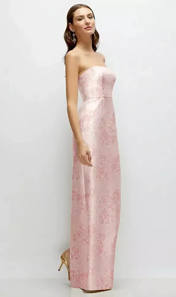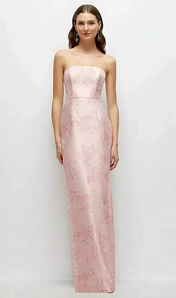 Make a statement in this chic floral twist on a classic column dress. Romantic blooms dance across the satin twill fabric, bringing an unexpected pop of whimsy to the sleek silhouette. The strapless maxi design and natural waist keep the look modern and streamlined, while the center-back slit allows just the right amount of movement. Perfect for those who want to blend a hint of romance with a fresh, minimalist style, this strapless floral column dress is a standout choice.