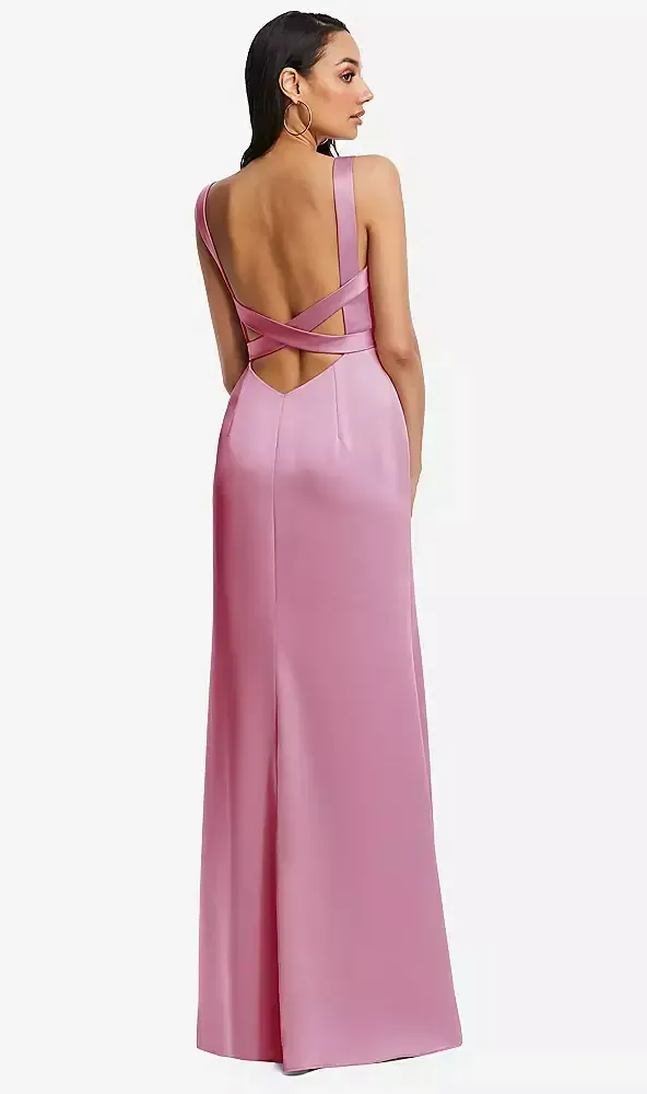 Shop this Inspired by the 'How to Lose a Guy in 10 Days' dress - this stunner has a sleek silhouette and low back. This lux charmeuse maxi dress makes a splash at formal events and weddings. The framed bodice feature wide-set straps that criss-cross at the low open back. Intricate strap detailing sets this exquisite gown apart from the rest.